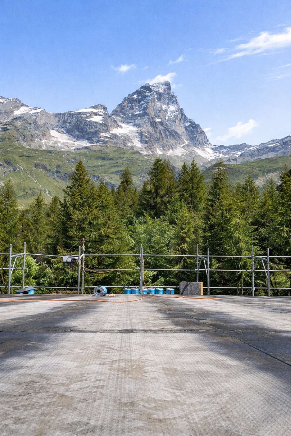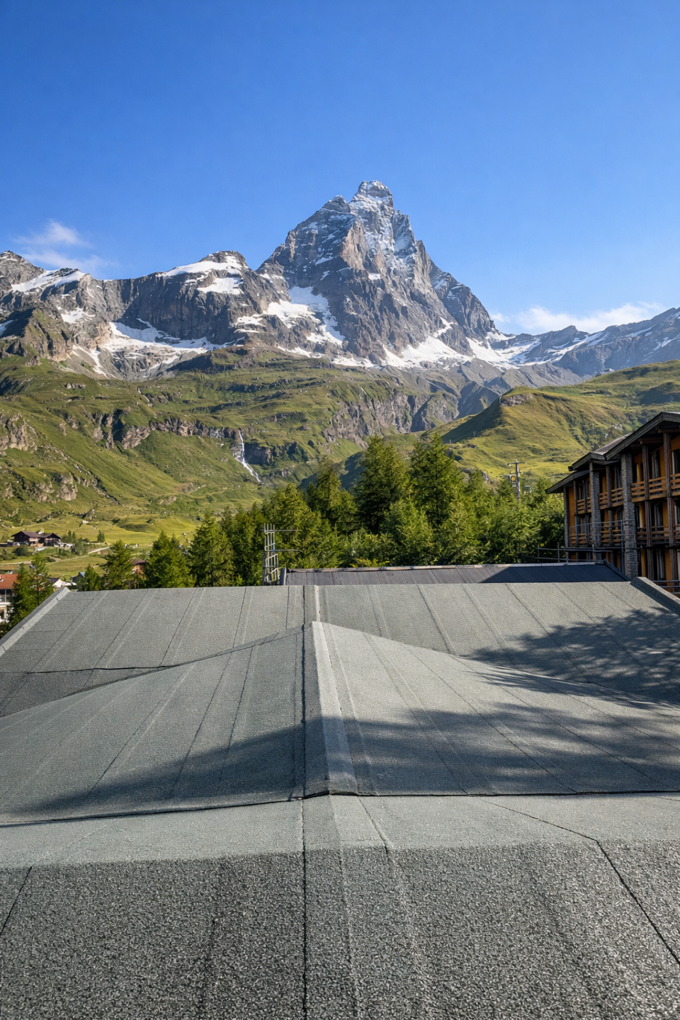 Intervento di impermeabilizzazione eseguito per la copertura di uno stabile ai piedi delle Alpi
